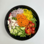 Arugula, Cucumber, Carrots, Radish, Red Onion, Banana Peppers, Cherry Tomato